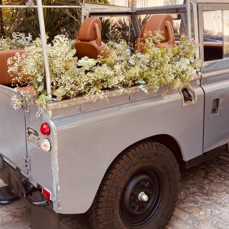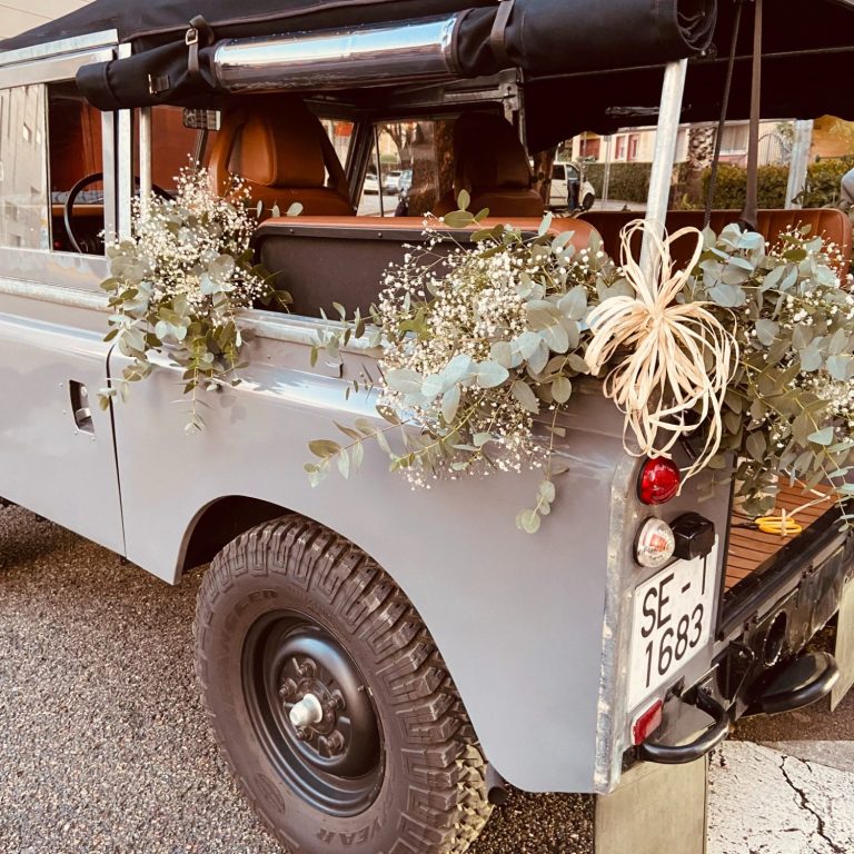 La decoración floral de nuestro Land Rover es una opción muy interesante para ese día tan especial. Nos adaptamos a las necesidades y deseos de los novios. Consultar distintas opciones.